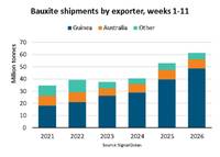 'During the first 11 weeks of 2026, bauxite shipments have surged 16% y/y, driven by strong Chinese demand for Guinean cargoes. Guinean bauxite has remained highly competitive, accounting for 79% of shipments and pushing non-Guinean bauxite shipments down 3% y/y…